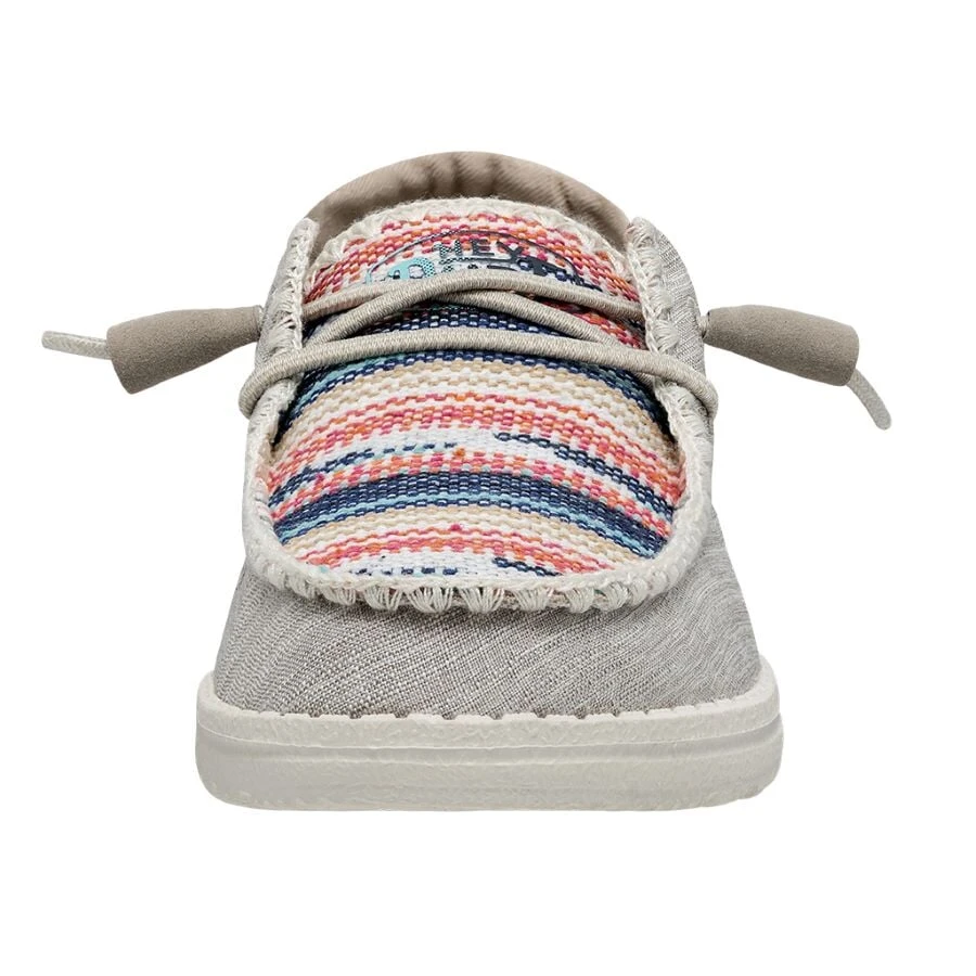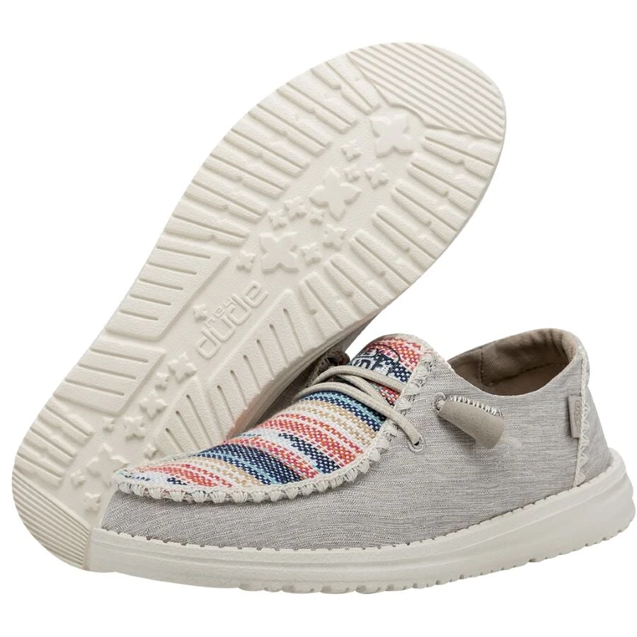 Introducing the Wendy Boho Blanket collection – classic, cool, vintage. Crochet stitching and patterned chambray-woven fabrics uppers come together with all the breathability, durability, and cloud-like HEYDUDE comfort your feet expect. Lined with a light and care-free cotton lining for strides just as easy-going and finished off on an ultralight outsole with no-tie, elastic laces. What more could you ask for from a shoe that serves for festival seasons that are meant to last all year ’round?Â